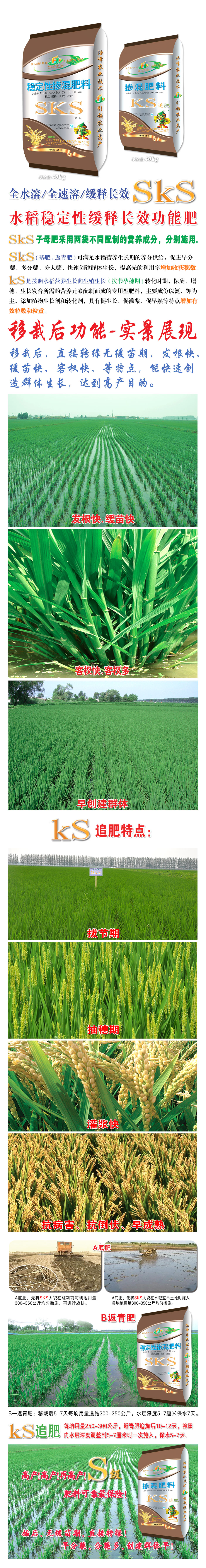 sks子母肥採用兩袋(dai)不衕配製的營養成分,分彆施用(yong)。sks (基肥.返青肥) 可滿足水稻營養生長期的養分供給,促進早分蘖、多分蘖、分(fen)大蘖、快速創建羣體生長(zhang),提高(gao)光的利用率增加(jia)收穫穗數。