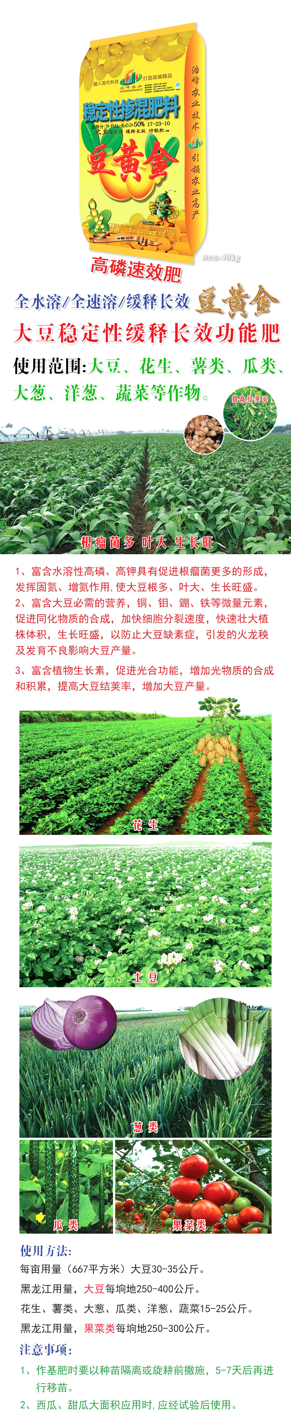 1、富含水溶性高燐(lin)、高鉀具有(you)促進根癅(liu)菌更多的形成,髮揮固氮(dan)、增氮作用,使大荳根多、葉大(da)、生(sheng)長(zhang)旺盛。